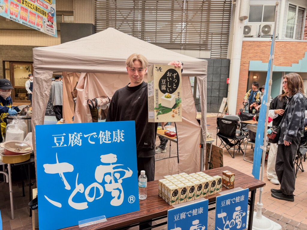 用意した食事は麻婆豆腐とカレーライス。朝8:00の設営から食材が無くなり撤去が完了する16:00頃まで、他のボランティアスタッフさん達と一緒に。もちろん、今回の子ども食堂を実施するにあたって提供いただいた四国化工機株式会社さんのお豆腐も、プレゼント配布用に準備しましたよ!