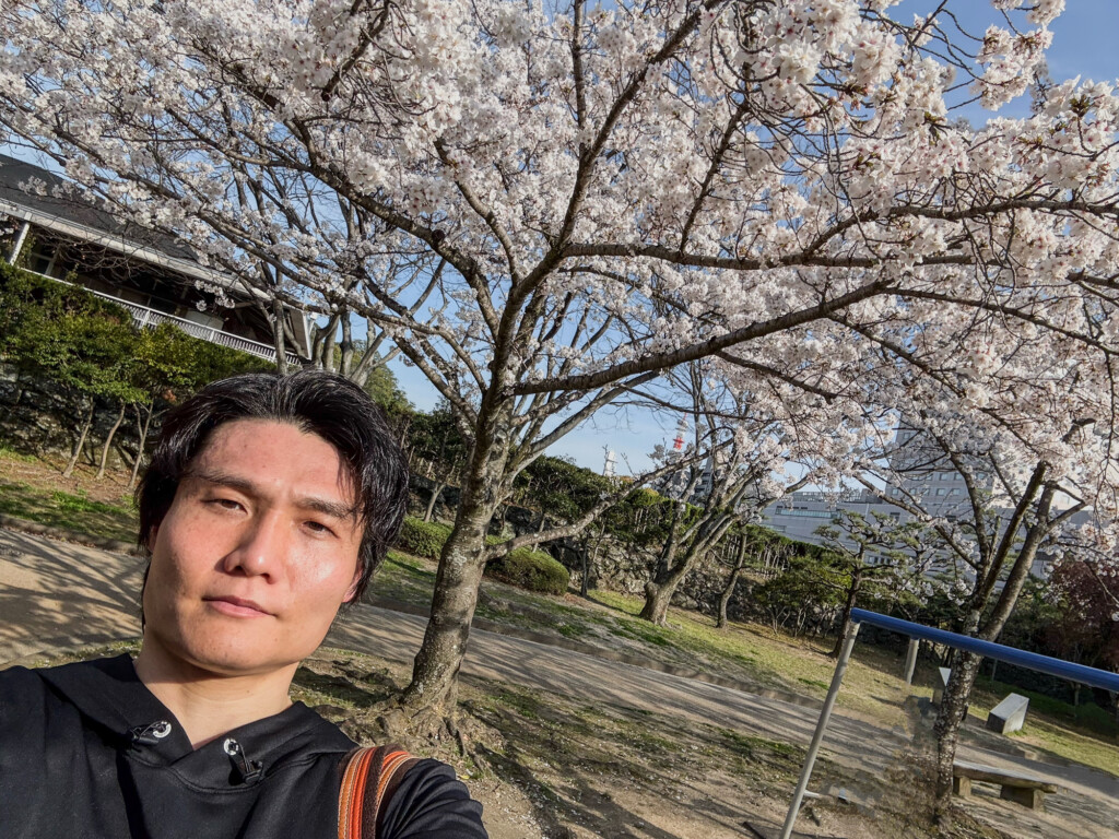 試合会場のお隣、徳島中央公園の桜が綺麗に咲いていたので思わずパシャリ。人生で初めて桜を背景に自撮りをした中務です^^